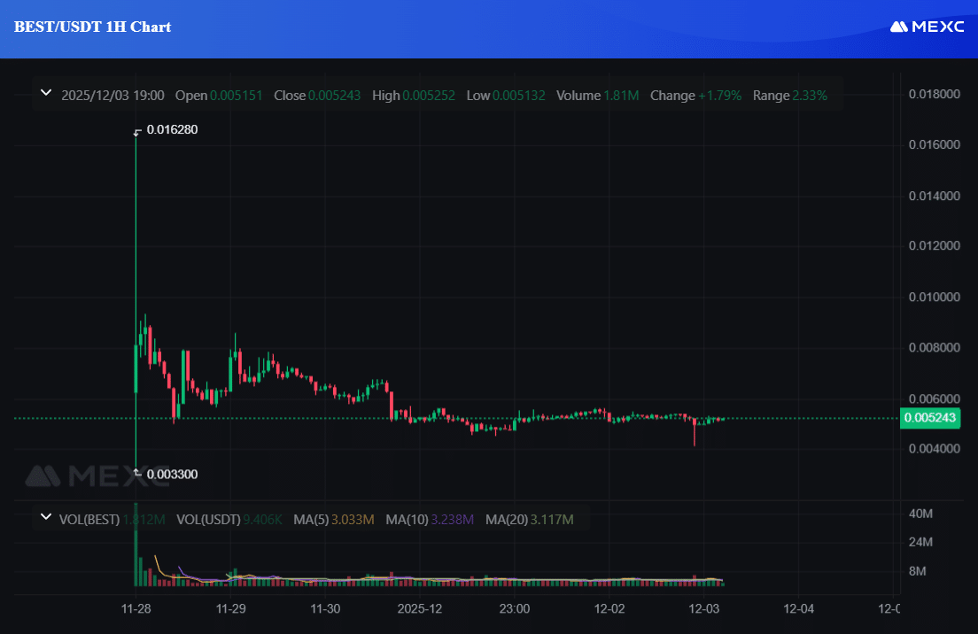 Dodatečný zájem podněcují i promo akce. KuCoin rozjíždí kampaň s odměnami v hodnotě 1 250 000 BEST, která potrvá do 7. prosince, a MEXC nabízí 1,2 milionu BEST plus 45 tisíc USDT, přičemž soutěž končí 4. prosince.